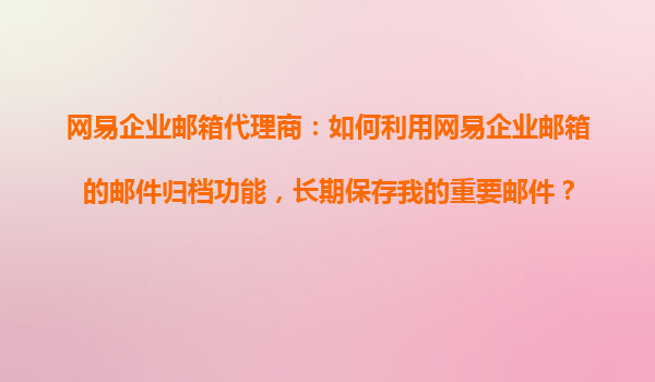 4008-020-360 網(wǎng)易企業(yè)郵箱代理商:如何高效利用郵件歸檔功能實(shí)現(xiàn)長期保存重要郵件 一、網(wǎng)易企業(yè)郵箱郵件歸檔功能的核心價(jià)值 網(wǎng)易企業(yè)郵箱作為國內(nèi)領(lǐng)先的企業(yè)級(jí)通信解決方案,其郵件歸檔功能專為滿足企業(yè)合規(guī)性、數(shù)據(jù)安全和知識(shí)...