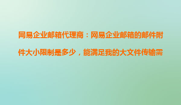 2025-10-29網(wǎng)易企業(yè)郵箱代理商:網(wǎng)易企業(yè)郵箱的郵件附件大小限制是多少,能滿足我的大文件傳輸需求嗎? 一、網(wǎng)易企業(yè)郵箱郵件附件大小限制解析 網(wǎng)易企業(yè)郵箱作為國內(nèi)領(lǐng)先的企業(yè)級(jí)郵箱服務(wù)商,其附件大小限制根據(jù)不...