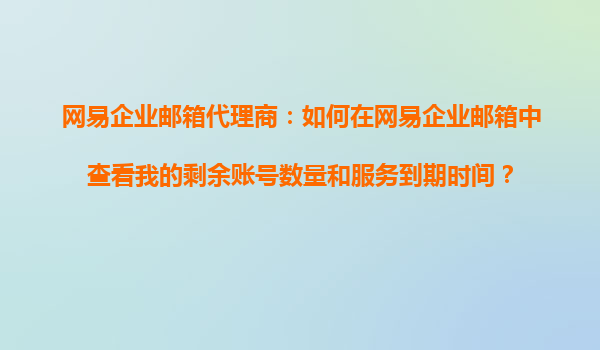 2025-10-30網(wǎng)易企業(yè)郵箱:查看剩余賬號(hào)數(shù)量與服務(wù)到期時(shí)間的操作指南 為什么要選擇網(wǎng)易企業(yè)郵箱? 網(wǎng)易企業(yè)郵箱作為國內(nèi)領(lǐng)先的企業(yè)級(jí)郵箱服務(wù),以其穩(wěn)定可靠的系統(tǒng)架構(gòu)、強(qiáng)大的安全防護(hù)能力和便捷的管理功能,成為眾多企業(yè)信...