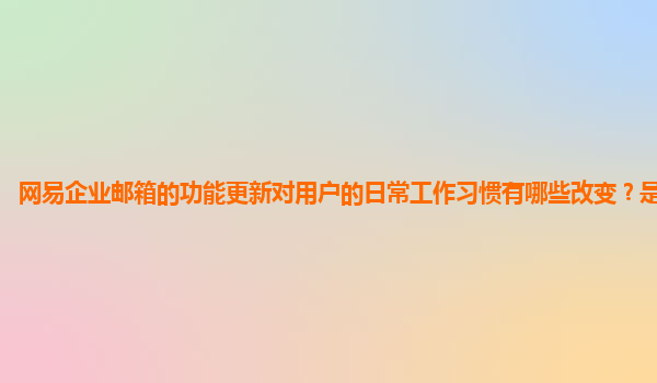 2024-11-27網易企業郵箱功能更新對用戶日常工作習慣的改變及其影響 隨著企業信息化建設的不斷推進,電子郵件作為企業溝通的重要工具,其功能和服務也在不斷更新和完善。網易企業郵箱作為國內領先的企業郵箱服務提供商之一,近...