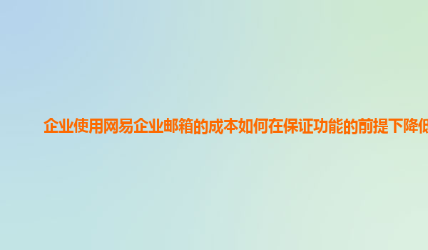 如何在保證功能的前提下降低企業使用網易企業郵箱的成本 網易企業郵箱憑借其穩定性、安全性以及豐富的功能,已經成為眾多企業郵箱服務的首選。然而,對于一些中小型企業來說,控制郵箱使用的成本也是一個重要考慮因...