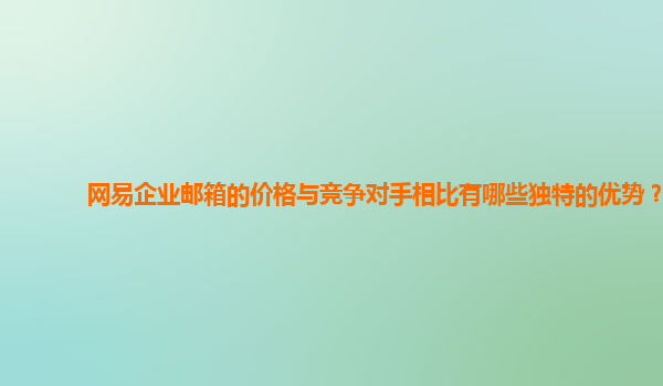 2024-11-27網易企業郵箱的價格與競爭對手相比的獨特優勢 隨著企業信息化建設的不斷推進,電子郵件已經成為公司日常溝通的重要工具之一。市面上有許多企業郵箱服務提供商,網易企業郵箱作為其中的佼佼者,在價格和服務上都具有...