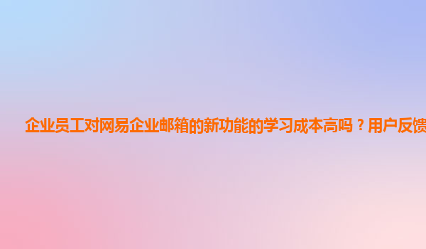 2024-11-27企業員工對網易企業郵箱新功能的學習成本及用戶反饋分析 隨著數字化辦公的普及,企業郵箱已經成為現代企業日常溝通和信息傳遞的重要工具。網易企業郵箱作為國內領先的企業郵箱服務提供商之一,近年來不斷推出新功能...