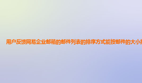 2024-11-27用戶反饋網易企業郵箱的郵件列表的排序方式能按郵件的大小排序嗎? 一、引言 在現代的企業通訊中,郵件是最重要的交流方式之一。尤其是在使用網易企業郵箱等企業級服務時,郵件的管理與排序直接影響到團隊的工作效...