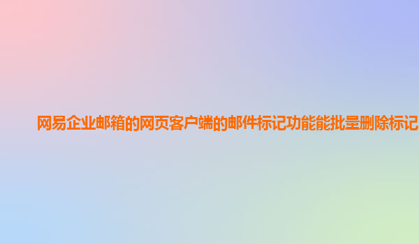 如何批量刪除網易企業郵箱中標記的郵件 在當今信息化的時代,電子郵件已經成為工作和生活中不可或缺的交流工具。尤其是在企業級郵件管理中,一個高效、便捷的郵箱系統對于提高工作效率至關重要。網易企業郵箱憑...