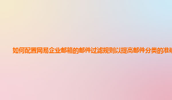 2024-11-19如何配置網易企業郵箱的郵件過濾規則以提高郵件分類的準確性 隨著企業日常工作中郵件溝通的增多,郵件管理變得愈加復雜。特別是在面對大量郵件的情況下,如何高效地分類和篩選郵件,以確保信息的重要性與緊急程度得...