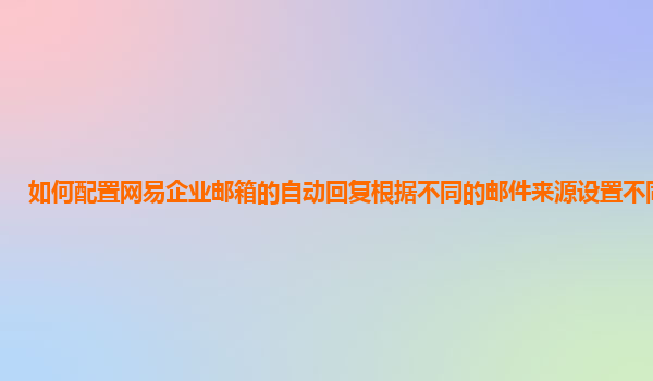 2024-11-19如何配置網易企業郵箱的自動回復,根據不同的郵件來源設置不同內容 網易企業郵箱是中國領先的企業郵箱服務提供商之一,憑借其穩定的服務質量和豐富的功能,已經成為許多企業的首選。企業在日常工作中往往需要處理大...