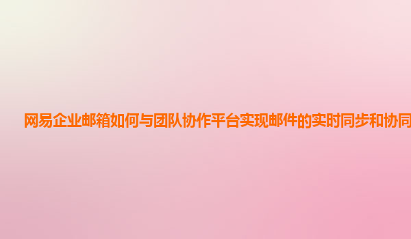 2024-11-17網易企業郵箱與團隊協作平臺的無縫對接 隨著互聯網時代的快速發展,企業對于高效、穩定、便捷的辦公工具需求日益增加。尤其是郵件系統,作為企業日常溝通的重要工具,如何實現與團隊協作平臺的實時同步與協...