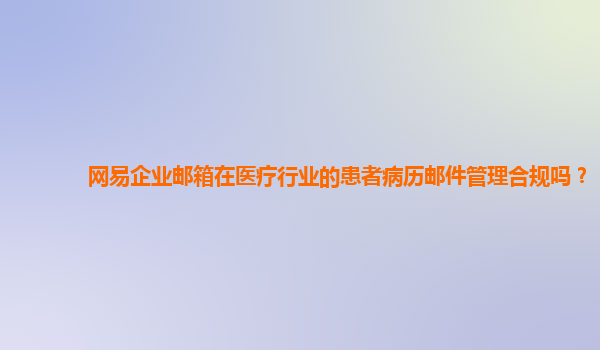 2024-11-17網易企業郵箱在醫療行業的患者病歷郵件管理合規性分析 在現代醫療行業,患者病歷作為重要的醫療數據,其管理、存儲和傳輸的安全性、隱私性至關重要。醫療機構需要確保患者病歷的存儲和交流符合國家法律法規、行業標...