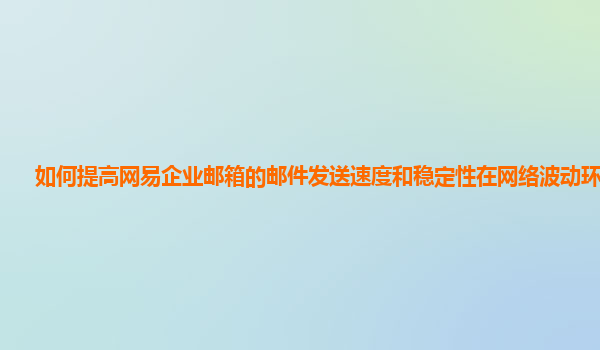 2024-11-16如何提高網易企業郵箱的郵件發送速度和穩定性在網絡波動環境下? 隨著互聯網技術的發展,電子郵件作為企業溝通和信息傳遞的重要工具,已經成為日常辦公不可或缺的一部分。尤其是在網絡波動的環境下,如何提高郵...