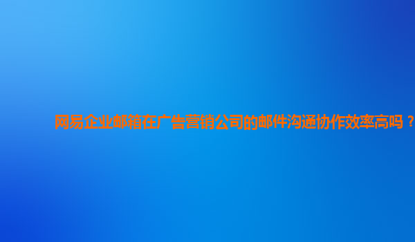 2024-11-16網易企業郵箱在廣告營銷公司中的郵件溝通協作效率分析 在現代商業環境中,電子郵件作為最為常用的溝通工具之一,已成為各行各業日常工作中不可或缺的一部分,尤其是廣告營銷公司。隨著廣告營銷行業的高速發展,企業...