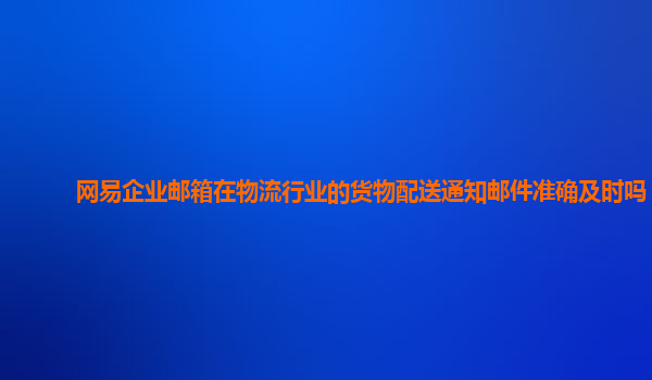 2024-11-17網易企業郵箱在物流行業的貨物配送通知郵件準確及時嗎? 隨著電子商務的快速發展,物流行業的貨物配送變得日益復雜且要求精確。企業需要通過高效、準確的方式與客戶進行溝通,尤其是在貨物配送過程中,通知郵件的及...