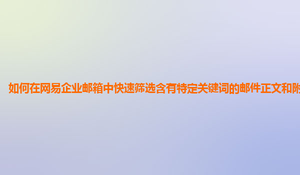 2024-11-12如何在網易企業郵箱中快速篩選含有特定關鍵詞的郵件正文和附件內容 隨著互聯網技術的不斷發展,電子郵件已經成為企業日常辦公中不可或缺的重要工具。尤其是在工作中,企業郵箱不僅僅是信息交流的渠道,還承載著大量...
