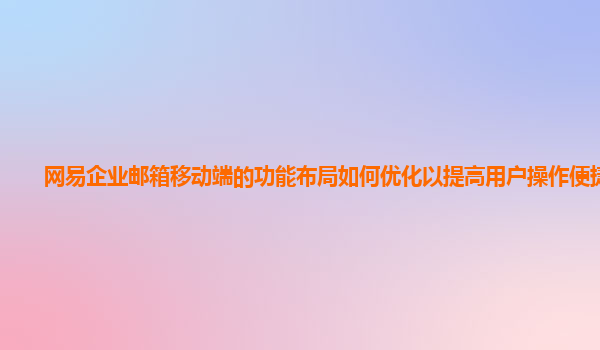 2024-11-13網易企業郵箱移動端的功能布局如何優化以提高用戶操作便捷性? 隨著信息技術的快速發展,企業對高效、便捷的通訊工具需求日益增加。網易企業郵箱作為國內領先的企業郵箱服務之一,憑借其穩定的性能、豐富的功能...