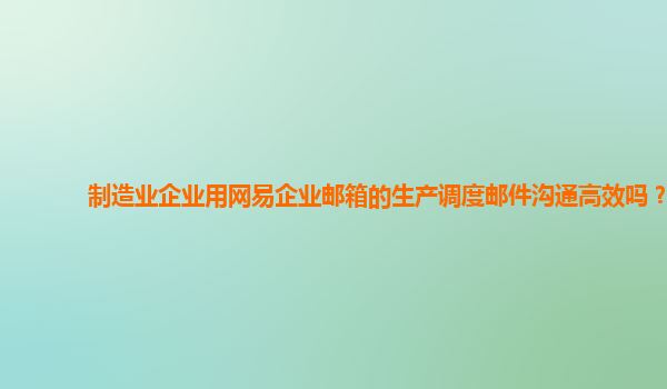 2024-11-11制造業企業用網易企業郵箱的生產調度郵件溝通高效嗎? 在當今信息化快速發展的時代,企業的生產調度和日常運營管理對溝通效率的要求越來越高,尤其是制造業企業,往往涉及到大量的生產任務調度、物料采購、設備維護...