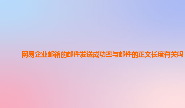 2024-11-10網易企業郵箱的郵件發送成功率與郵件正文長度的關系 在現代職場中,電子郵件已經成為了溝通的重要工具,尤其是對于企業來說,穩定、高效的郵件系統對于日常運營至關重要。網易企業郵箱憑借其穩定性、安全性以及...