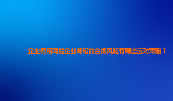 2024-11-10企業使用網易企業郵箱的合規風險及應對策略 在現代企業的日常運營中,電子郵件是最為常用的溝通工具之一。而網易企業郵箱作為國內知名的企業郵箱服務提供商,憑借其安全、穩定、便捷的優勢,廣泛應用于各種規模的企...