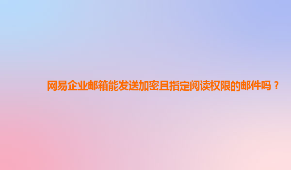 2024-11-07網易企業郵箱能發送加密且指定閱讀權限的郵件嗎? 在如今的信息時代,企業對信息安全與隱私保護的需求日益增強。特別是在電子郵件成為企業溝通的核心工具之一的情況下,如何保障郵件內容的安全性、避免敏感信息...
