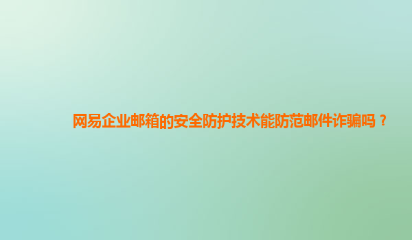 2024-11-07網易企業郵箱的安全防護技術是否能防范郵件詐騙? 在信息化飛速發展的今天,企業郵箱已經成為企業溝通的重要工具。然而,隨著郵件使用的廣泛普及,郵件詐騙等網絡安全威脅也愈加嚴重。網易企業郵箱作為國內...