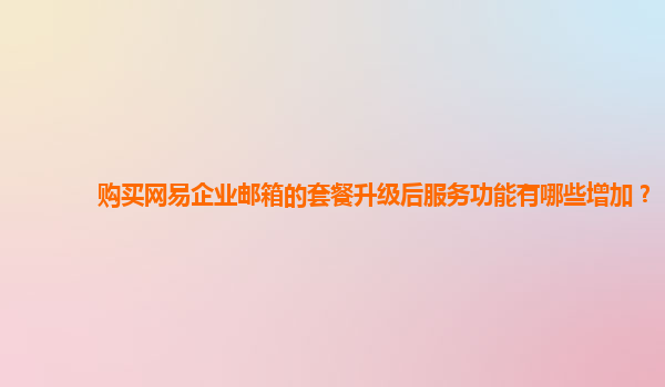 2024-11-07網易企業郵箱套餐升級后的服務功能及優勢分析 隨著信息化時代的快速發展,企業通訊工具的重要性日益增加。作為國內領先的互聯網公司,網易提供的企業郵箱服務一直受到廣泛關注。特別是在用戶選擇升級到更高套...