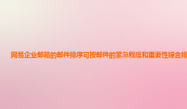 2024-11-06網易企業郵箱的郵件排序可按郵件的緊急程度和重要性綜合排序嗎? 在現代職場中,郵箱已成為溝通和協作的核心工具之一,尤其是在企業工作環境中,企業郵箱的管理和使用不僅僅是接收與發送郵件那么簡單,還涉及到工...