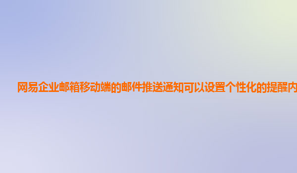 2024-11-06網易企業郵箱移動端郵件推送通知個性化設置分析 一、網易企業郵箱的優勢 網易企業郵箱作為國內領先的企業級郵箱服務,憑借其穩定、安全以及多樣化的功能,廣泛應用于各種企業和機構中。網易企業郵箱不僅能夠...