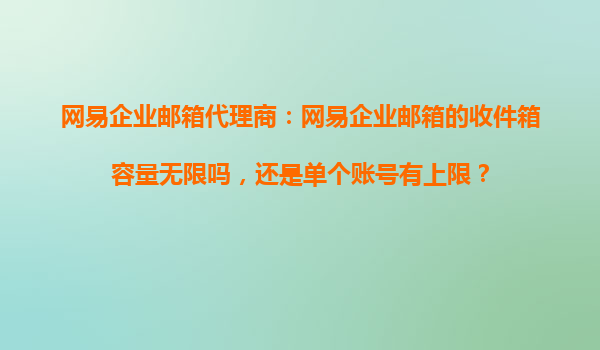 2025-10-25網(wǎng)易企業(yè)郵箱代理商解讀:網(wǎng)易企業(yè)郵箱的收件箱容量是否無限? 在當(dāng)今數(shù)字化辦公環(huán)境中,企業(yè)郵箱作為溝通的核心工具,其性能與功能直接影響企業(yè)的運營效率。網(wǎng)易企業(yè)郵箱憑借其穩(wěn)定性和安全性,成為...