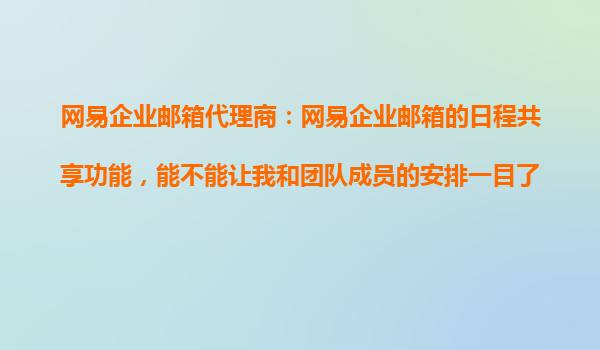 2025-10-25網(wǎng)易企業(yè)郵箱代理商:日程共享功能讓團隊安排一目了然 一、日程共享功能的核心價值 在現(xiàn)代企業(yè)管理中,高效的團隊協(xié)作離不開清晰的時間規(guī)劃。網(wǎng)易企業(yè)郵箱作為國內(nèi)領(lǐng)先的企業(yè)通信解決方...