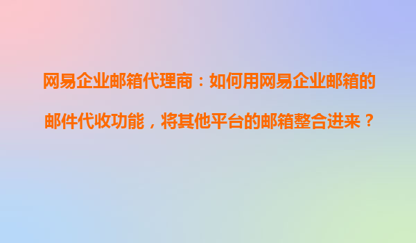 2025-10-24網(wǎng)易企業(yè)郵箱代理商:如何用網(wǎng)易企業(yè)郵箱的郵件代收功能整合其他平臺郵箱? 一、網(wǎng)易企業(yè)郵箱郵件代收功能簡介 作為國內(nèi)領(lǐng)先的企業(yè)郵箱服務(wù)商,網(wǎng)易企業(yè)郵箱提供的郵件代收功能(也稱為POP3...
