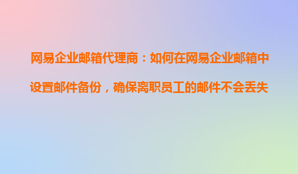 2025-10-25網(wǎng)易企業(yè)郵箱代理商:如何在網(wǎng)易企業(yè)郵箱中設(shè)置郵件備份,確保離職員工的郵件不會丟失? 一、網(wǎng)易企業(yè)郵箱的核心優(yōu)勢 作為國內(nèi)領(lǐng)先的企業(yè)郵箱服務(wù)提供商,網(wǎng)易企業(yè)郵箱憑借其穩(wěn)定的系統(tǒng)架構(gòu)、強大的安...