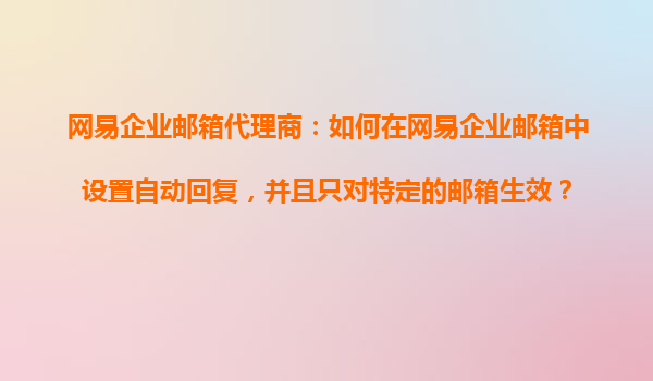 2025-10-24網(wǎng)易企業(yè)郵箱:專業(yè)高效的郵件管理平臺 在當(dāng)今快節(jié)奏的商業(yè)環(huán)境中,企業(yè)郵箱不僅是溝通的重要工具,更是企業(yè)形象和專業(yè)度的體現(xiàn)。網(wǎng)易企業(yè)郵箱憑借其穩(wěn)定、安全、高效的特性,成為眾多企業(yè)的首選。特別是在自動回復(fù)...
