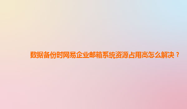 2024-11-02數據備份時網易企業郵箱系統資源占用高解決方案 在進行數據備份時,網易企業郵箱系統資源占用過高可能會影響系統的穩定運行。為了解決這一問題,我們可以采取以下措施: 1.合理設置備份策略 通過網易企業郵箱后臺...