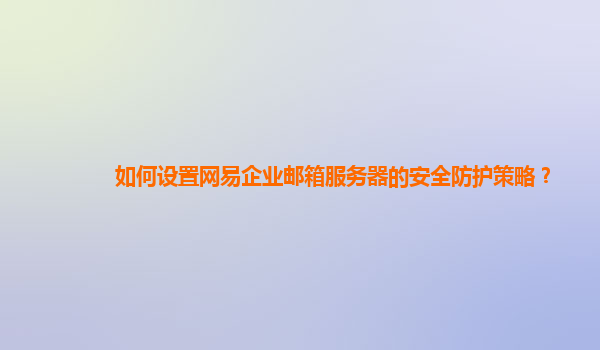 2024-11-02如何設置網易企業郵箱服務器的安全防護策略 在當今信息化社會,企業郵箱已成為企業日常運營和溝通中不可或缺的工具。網易企業郵箱憑借其穩定性和安全性,成為眾多企業的首選。在使用企業郵箱的過程中,設置有效的安...