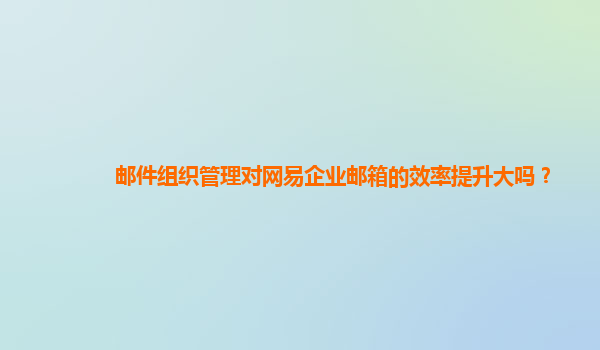 2024-10-20郵件組織管理對網易企業郵箱的效率提升大嗎? 網易企業郵箱的優勢 作為國內知名的企業郵箱服務提供商,網易企業郵箱擁有諸多優勢,如穩定可靠的郵件系統、豐富多樣的功能和靈活的定制服務,為企業提供了高效便捷的...