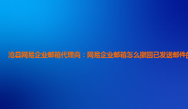 沭陽網易企業郵箱代理商:網易郵箱發出去的郵件怎么撤回來 電子郵件作為一種重要的商務通信工具,其在企業運營中起著至關重要的作用。很明顯,隨著市場環境的變化,企業對于郵件服務的需求也在不斷升級。而網易...