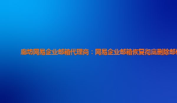 2024-06-13廊坊網易企業郵箱代理商:網易企業郵箱恢復徹底刪除郵件 作為一名專業的網易企業郵箱代理商,我們深知在工作中不小心刪除了重要的郵件是多么的慚愧和無奈。放心,網易企業郵箱擁有強大的郵件恢復功能,可以幫你找回...
