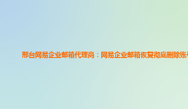 2024-06-13邢臺網易企業郵箱代理商:網易企業郵箱恢復徹底刪除賬號 在現今這個充斥著信息技術的時代里,電子郵件作為最重要的在線通信工具之一,已經成為企業運營中不可或缺的一部分。尤其是網易企業郵箱,憑借其簡潔、高效、...