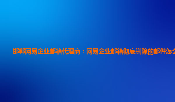2024-06-13邯鄲網易企業郵箱代理商:網易企業郵箱徹底刪除的郵件怎么恢復 網易企業郵箱的優勢 作為國內最大的企業郵箱代理商,網易企業郵箱擁有一系列顯著的優勢。首先,網易企業郵箱提供穩定、安全、高效的郵件服務,保證了...