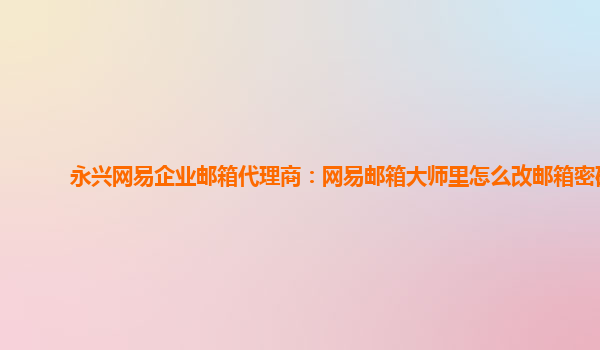 2024-06-13永興網易企業郵箱代理商:網易郵箱大師里怎么改郵箱密碼 網易企業郵箱的優勢 網易企業郵箱是一款專為企業定制的高效、安全的企業郵箱服務,提供了強大的功能和穩定的服務,能夠滿足企業對郵箱管理的各種需求。其優...