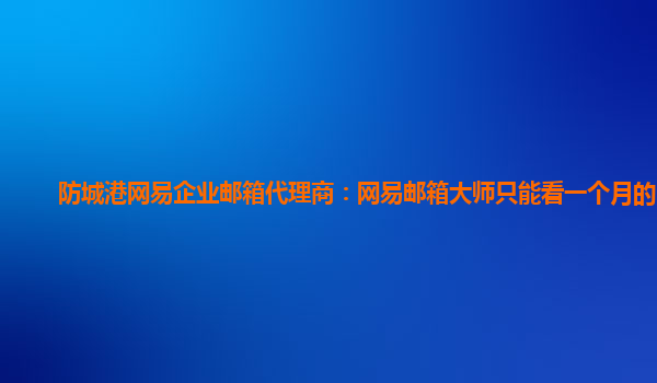 2024-06-12防城港網易企業郵箱代理商:網易郵箱大師只能看一個月的郵件 作為一家企業,郵件通信是我們日常工作中不可或缺的一部分。因此,選擇一款穩定、功能強大的企業郵箱非常重要。在我司選擇了網易企業郵箱之后,我深刻體...