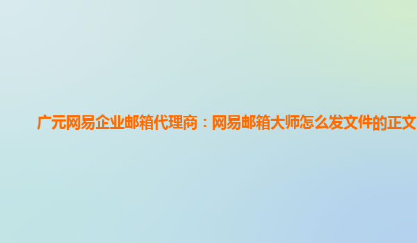2024-06-12安岳網易企業郵箱代理商:網易郵箱大師如何發送文件給別人 作為安岳網易企業郵箱代理商,我們深知網易企業郵箱的強大功能和優勢。其中,網易郵箱大師作為一款全面、專業的企業郵箱管理工具,不僅支持高效的郵件收發...