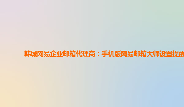 2024-06-12韓城網易企業郵箱代理商:手機版網易郵箱大師設置提醒 作為一家專業的韓城網易企業郵箱代理商,我們幫助企業客戶配置和管理他們的企業郵箱,并向他們推薦了手機版網易郵箱大師。在使用過程中,我們發現了許多優勢,...