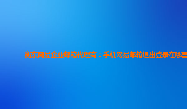 2024-06-12衡東網易企業郵箱代理商 作為衡東地區的網易企業郵箱代理商,我們提供專業的企業郵箱服務,為客戶提供高效、穩定、安全的郵箱解決方案。 手機網易郵箱退出登錄在哪里 在手機上退出網易企業郵箱登錄非常簡單,只需...