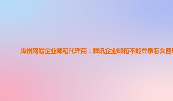 2024-06-12禹州網易企業郵箱代理商:騰訊企業郵箱不能登錄怎么回事 最近有用戶反饋稱,在使用騰訊企業郵箱時遇到了登錄問題,不知道怎么回事。如果您也在使用騰訊企業郵箱時遇到類似問題,不妨考慮嘗試禹州網易企業郵箱。禹州...