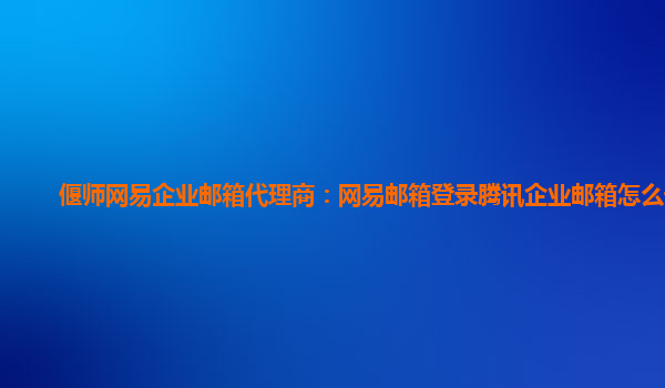 2024-06-12偃師網易企業郵箱代理商:網易郵箱登錄騰訊企業郵箱怎么設置 在企業的日常運營中,郵箱服務是必不可少的一項工具。而在選擇企業郵箱服務商時,網易企業郵箱和騰訊企業郵箱是較為常見的選擇。作為偃師地區的...