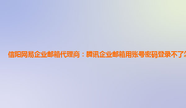 2024-06-12信陽網易企業郵箱代理商:騰訊企業郵箱用賬號密碼登錄不了怎么回事 問題分析: 近期有用戶反映使用騰訊企業郵箱時,無法通過賬號密碼登錄。這種情況可能是由多種原因引起的,需要仔細分析排查。 ...