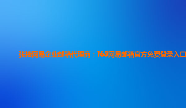 2024-06-12慶陽網易企業郵箱代理商:163網易免費郵箱官方登陸網站 作為慶陽網易企業郵箱代理商,我們為您提供便捷高效的163網易免費郵箱服務。以下是網易企業郵箱的優勢和好用之處: 安全可靠 網易企業郵箱擁有嚴格的安全機...