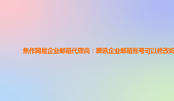 焦作網易企業郵箱代理商:騰訊企業郵箱賬號可以修改嗎 作為焦作地區的網易企業郵箱代理商,我們經常接到關于騰訊企業郵箱賬號能否修改的問題。在這里我們來解答一下這個問題。 首先,我要說的是騰訊企...