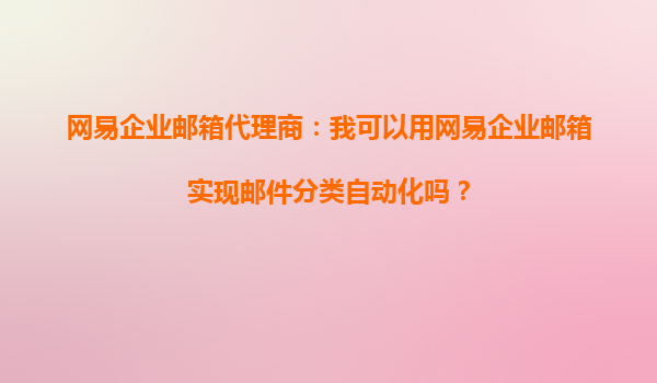 2025-10-12網(wǎng)易企業(yè)郵箱代理商:如何利用網(wǎng)易企業(yè)郵箱實(shí)現(xiàn)郵件分類自動化? 一、郵件分類自動化的需求背景 在數(shù)字化辦公時代,企業(yè)郵箱已成為日常溝通的核心工具。隨著郵件數(shù)量激增,如何高效管理郵件成為企業(yè)面臨的...