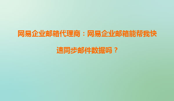 2025-10-13網(wǎng)易企業(yè)郵箱代理商:網(wǎng)易企業(yè)郵箱能幫我快速同步郵件數(shù)據(jù)嗎? 在當(dāng)今快節(jié)奏的商業(yè)環(huán)境中,高效、穩(wěn)定的企業(yè)郵箱服務(wù)是企業(yè)溝通和協(xié)作的重要工具。作為國內(nèi)領(lǐng)先的企業(yè)郵箱服務(wù)提供商,網(wǎng)易企業(yè)郵箱憑借其強(qiáng)大的...